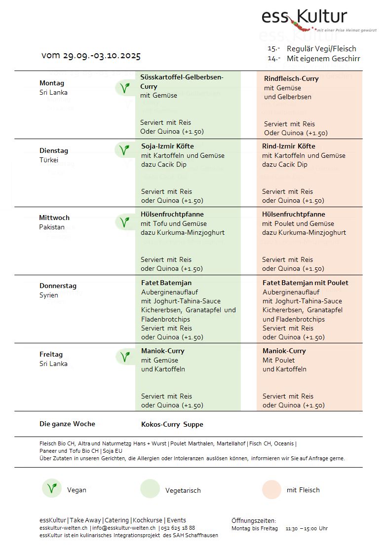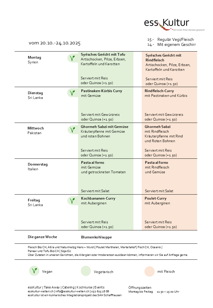 essKultur ist ein Integrationsprojekt des Schweizerischen Arbeiterhilfswerks SAH Schaffhausen. essKultur steht für Integration, Authentizität, Vielfalt und Vermittlung.